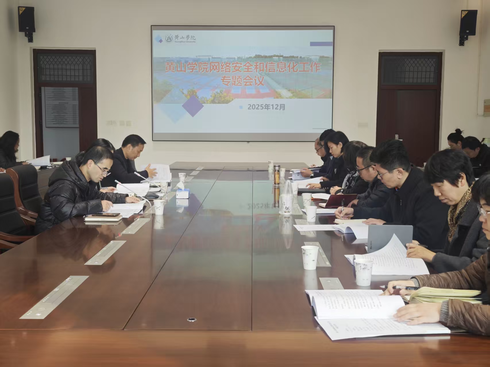 会议学习了《中华人民共和国网络安全法》(2017年施行)、第十四届全国人大常委会第十八次会议通过的《关于修改〈中华人民共和国网络安全法〉的决定》,听取了黄山学院2025年度网络安全和信息化工作总结报告、《黄山学院“十五五”信息化建设规划(草稿)》起草情况报告。